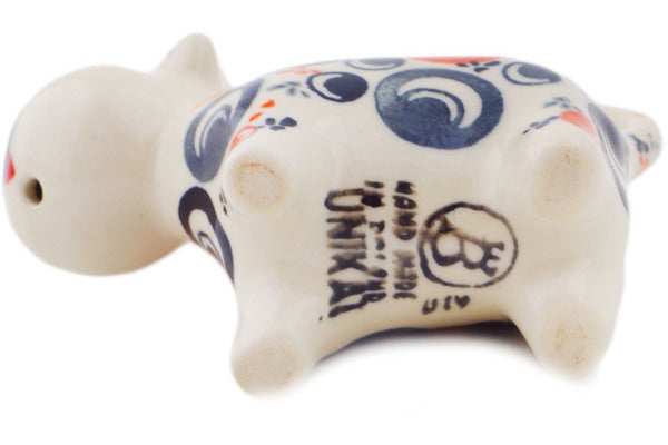 This Polish Pottery Cow Shaped Creamer is handmade and handpainted by the Ceramika Bona factory in Boleslawiec, Poland. Manufacturer item number H7189Q. It is 3¼" high and measures 4½" by 1¾". The capacity of this Cow Shaped Creamer is 2.47 oz (brimful) and it weighs 0.2 lbs. It is part of the Red Peacock Eye Collection.