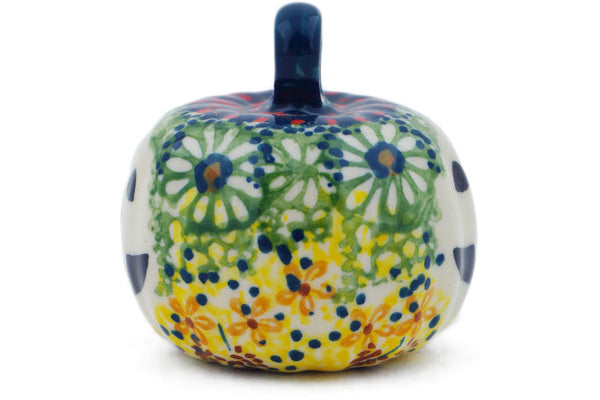 This Polish Pottery Pumpkin Ornament is handmade and handpainted by the Manufaktura factory in Boleslawiec, Poland. Manufacturer item number H4415O. It is 2¼" high and measures 2¼" by 2¼". The weight of this Pumpkin Ornament is 0.2 lbs. It is part of the Sunshine Grotto Collection.