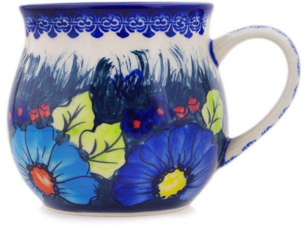 This Polish Pottery Bubble Mug is handmade and handpainted by the Ceramika Bona factory in Boleslawiec, Poland. Manufacturer item number H3547Q. It is 4¼" high and measures 5¾" by 4½". The capacity of this Bubble Mug is 21.37 oz (brimful) and it weighs 0.9 lbs. It is part of the Butterfly Splendor Collection.