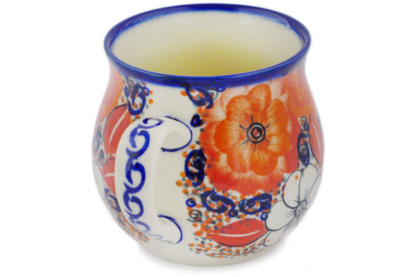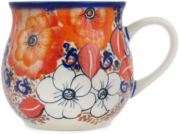 This Polish Pottery Bubble Mug is handmade and handpainted by the Ceramika Bona factory in Boleslawiec, Poland. Manufacturer item number H5892R. It is 4¼" high and measures 5¾" by 4½". The capacity of this Bubble Mug is 21.37 oz (brimful) and it weighs 0.9 lbs. It is part of the Poppy Passion Collection.
