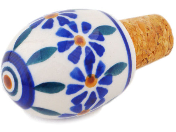 This Polish Pottery Bottle Stopper is handmade and handpainted by the Manufaktura factory in Boleslawiec, Poland. Manufacturer item number H7402P. It is 2¾" high and measures 1½" by 1½". The weight of this Bottle Stopper is 0.1 lbs. It is part of the Peacock Collection.