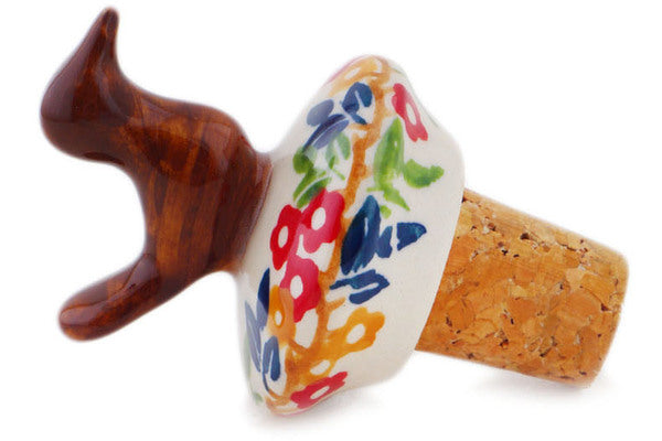 This Polish Pottery Bottle Stopper is handmade and handpainted by the Manufaktura factory in Boleslawiec, Poland. Manufacturer item number H8316P. It is 3" high and measures 1¾" by 1¾". The weight of this Bottle Stopper is 0.1 lbs. It is part of the Tropical Bloomscape Collection.