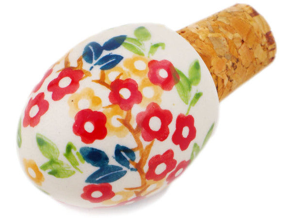 This Polish Pottery Bottle Stopper is handmade and handpainted by the Manufaktura factory in Boleslawiec, Poland. Manufacturer item number H8320P. It is 2¾" high and measures 1½" by 1½". The weight of this Bottle Stopper is 0.1 lbs. It is part of the Tropical Bloomscape Collection.