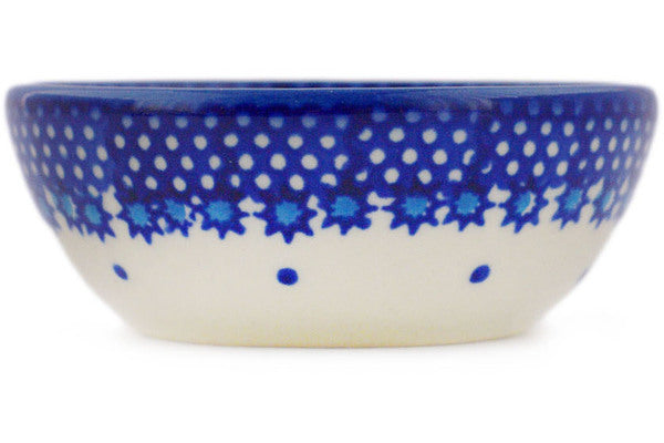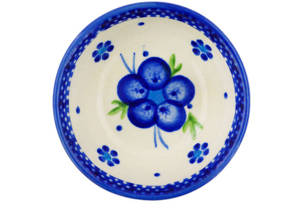 This Polish Pottery Bowl is handmade and handpainted by the Ceramika Bona factory in Boleslawiec, Poland. Manufacturer item number H6998E. It is 1½" high and measures 3½" by 3½". The capacity of this Bowl is 3.38 oz (brimful) and it weighs 0.3 lbs. It is part of the Bleu-Belle Fleur Collection.