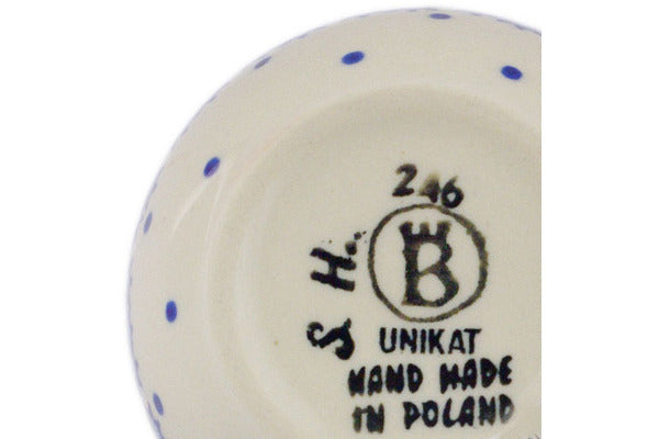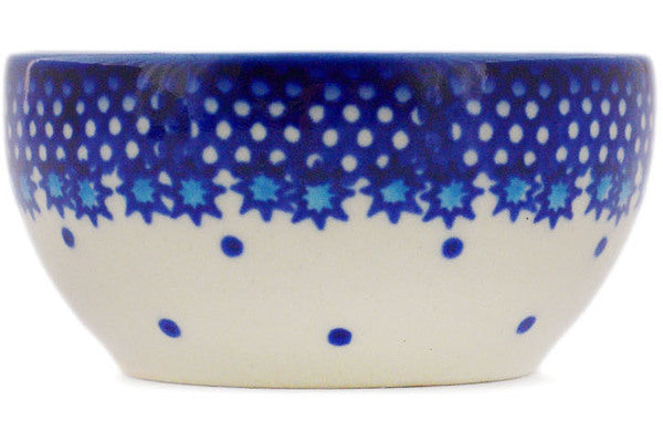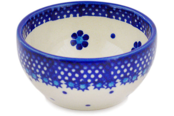 This Polish Pottery Bowl is handmade and handpainted by the Ceramika Bona factory in Boleslawiec, Poland. Manufacturer item number H4586J. It is 1½" high and measures 3¼" by 3¼". The capacity of this Bowl is 3.18 oz (brimful) and it weighs 0.3 lbs. It is part of the Bleu-Belle Fleur Collection.