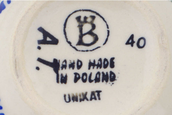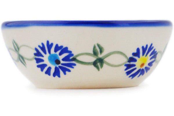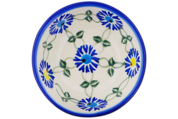 This Polish Pottery Bowl is handmade and handpainted by the Ceramika Bona factory in Boleslawiec, Poland. Manufacturer item number H2237R. It is 1½" high and measures 3½" by 3½". The capacity of this Bowl is 3.38 oz (brimful) and it weighs 0.3 lbs. It is part of the Blue Thistle Beauty Collection.
