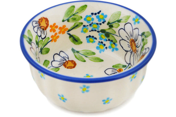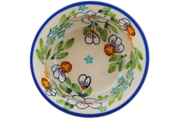 This Polish Pottery Bowl is handmade and handpainted by the Manufaktura factory in Boleslawiec, Poland. Manufacturer item number H0431O. It is 1¾" high and measures 3½" by 3½". The capacity of this Bowl is 4.13 oz (brimful) and it weighs 0.3 lbs. It is part of the Delicate Collection.