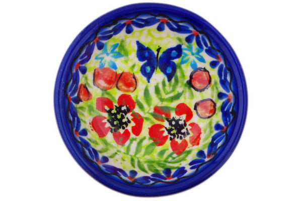 This Polish Pottery Bowl is handmade and handpainted by the Ceramika Bona factory in Boleslawiec, Poland. Manufacturer item number H8759Q. It is 1" high and measures 3" by 3". The capacity of this Bowl is 1.22 oz (brimful) and it weighs 0.2 lbs. It is part of the Metamorphosis Collection.
