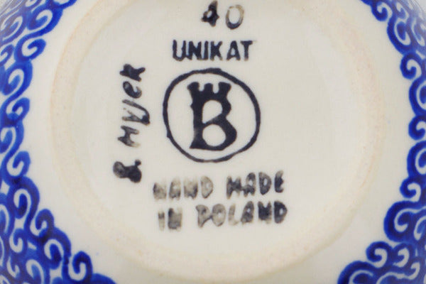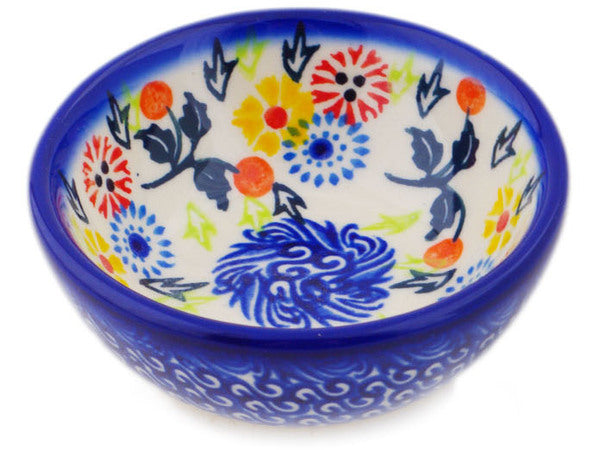 This Polish Pottery Bowl is handmade and handpainted by the Ceramika Bona factory in Boleslawiec, Poland. Manufacturer item number H1916R. It is 1½" high and measures 3½" by 3½". The capacity of this Bowl is 3.38 oz (brimful) and it weighs 0.3 lbs. It is part of the Pastel Spring Wreath Collection.