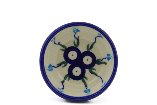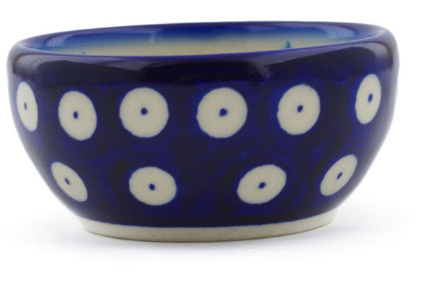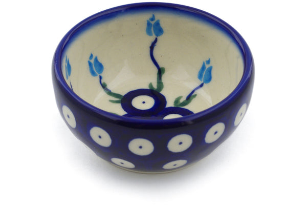 This Polish Pottery Bowl is handmade and handpainted by the Ceramika Bona factory in Boleslawiec, Poland. Manufacturer item number H3185J. It is 1½" high and measures 3¼" by 3¼". The capacity of this Bowl is 3.18 oz (brimful) and it weighs 0.3 lbs. It is part of the Peacock Tulip Garden Collection.