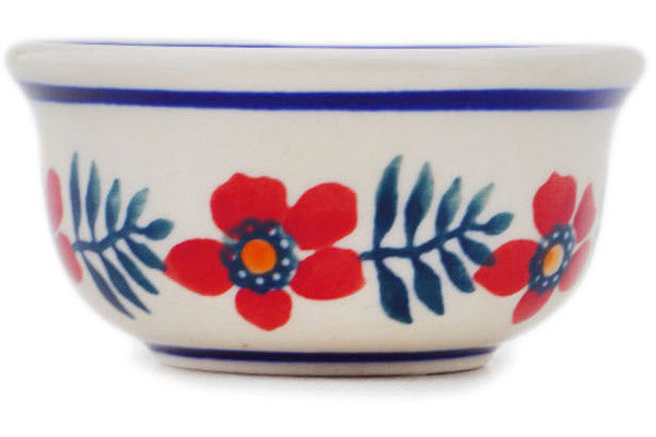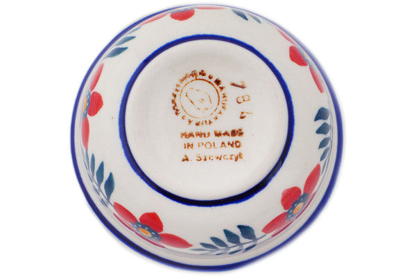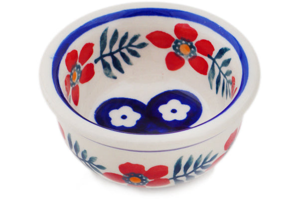 This Polish Pottery Bowl is handmade and handpainted by the Manufaktura factory in Boleslawiec, Poland. Manufacturer item number H8554Q. It is 1¼" high and measures 2¾" by 2¾". The weight of this Bowl is 0.2 lbs. It is part of the Poppies And Ferns Collection.