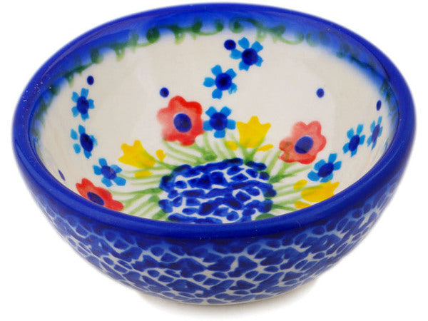 This Polish Pottery Bowl is handmade and handpainted by the Ceramika Bona factory in Boleslawiec, Poland. Manufacturer item number H2118R. It is 1½" high and measures 3½" by 3½". The capacity of this Bowl is 3.38 oz (brimful) and it weighs 0.3 lbs. It is part of the Primary Spring Collection.
