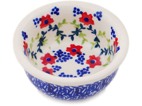 This Polish Pottery Bowl is handmade and handpainted by the Manufaktura factory in Boleslawiec, Poland. Manufacturer item number H8515Q. It is 1¼" high and measures 2¾" by 2¾". The weight of this Bowl is 0.2 lbs. It is part of the Rings Of Happiness Collection.