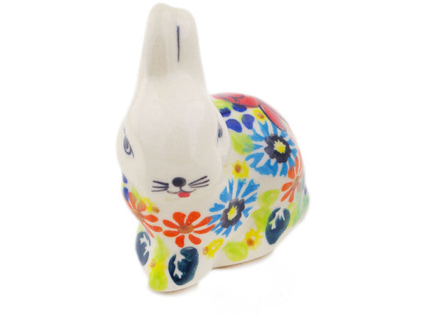 This Polish Pottery Bunny Figurine is handmade and handpainted by the Ceramika Bona factory in Boleslawiec, Poland. Manufacturer item number H1308R. It is 3¼" high and measures 3¼" by 2¼". The weight of this Bunny Figurine is 0.2 lbs. It is part of the Bold Poppies Collection.