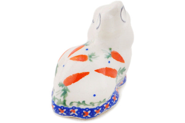 This Polish Pottery Bunny Figurine is handmade and handpainted by the Ceramika Bona factory in Boleslawiec, Poland. Manufacturer item number H9979O. It is 3¼" high and measures 3¼" by 2¼". The weight of this Bunny Figurine is 0.2 lbs. It is part of the Carrot Delight Collection.