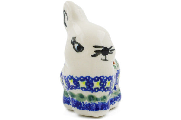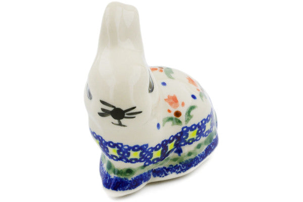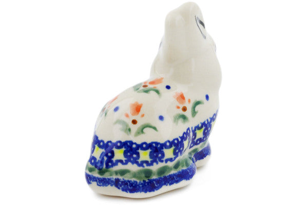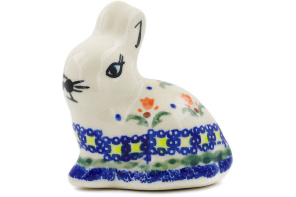 This Polish Pottery Bunny Figurine is handmade and handpainted by the Ceramika Bona factory in Boleslawiec, Poland. Manufacturer item number H0620K. It is 3¼" high and measures 3¼" by 2¼". The weight of this Bunny Figurine is 0.2 lbs. It is part of the Cocentric Tulips Collection.