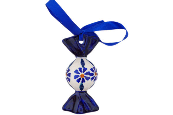 This Polish Pottery Candy Ornament is handmade and handpainted by the Manufaktura factory in Boleslawiec, Poland. Manufacturer item number H7392P. It is 1½" high and measures 3¼" by 3¼". The weight of this Candy Ornament is 0.1 lbs. It is part of the Peacock Collection.