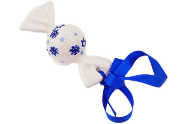 This Polish Pottery Candy Ornament is handmade and handpainted by the Manufaktura factory in Boleslawiec, Poland. Manufacturer item number H7149P. It is 1½" high and measures 3¼" by 3¼". The weight of this Candy Ornament is 0.1 lbs. It is part of the Snowdrift Collection.