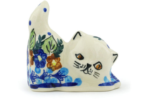 This Polish Pottery Cat Figurine is handmade and handpainted by the Ceramika Bona factory in Boleslawiec, Poland. Manufacturer item number H0995H. It is 3¼" high and measures 3¼" by 2". The weight of this Cat Figurine is 0.3 lbs. It is part of the Bold Poppies Collection.
