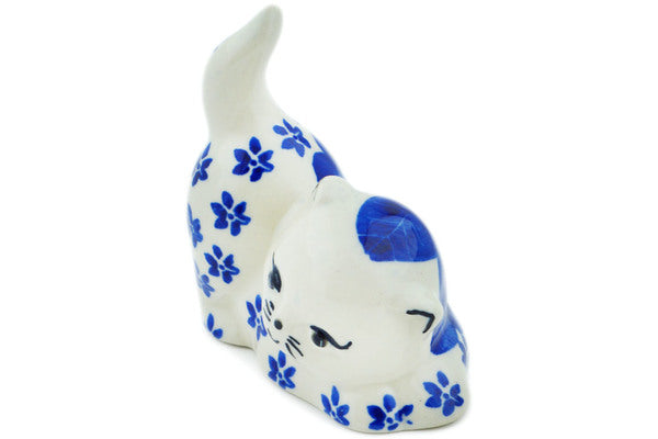 This Polish Pottery Cat Figurine is handmade and handpainted by the Ceramika Bona factory in Boleslawiec, Poland. Manufacturer item number H8953N. It is 3¼" high and measures 3¼" by 2". The weight of this Cat Figurine is 0.3 lbs. It is part of the Divine Cobalt Collection.