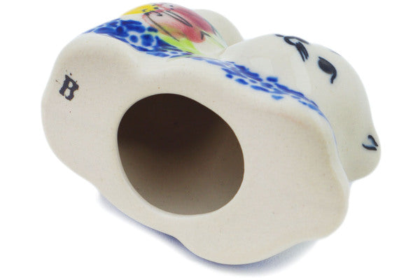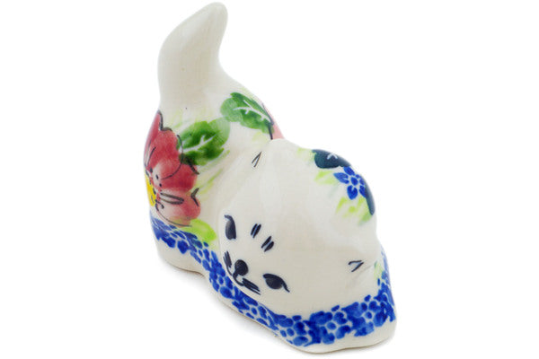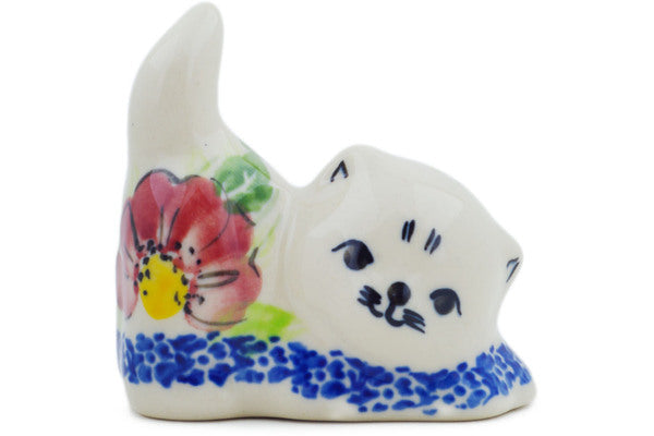 This Polish Pottery Cat Figurine is handmade and handpainted by the Ceramika Nina factory in Boleslawiec, Poland. Manufacturer item number H2659P. It is 3¼" high and measures 3¼" by 2". The weight of this Cat Figurine is 0.3 lbs. It is part of the Maroon Blossoms Collection.