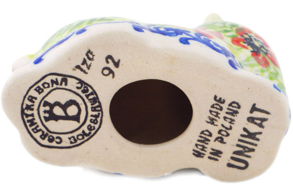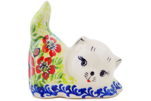 This Polish Pottery Cat Figurine is handmade and handpainted by the Ceramika Bona factory in Boleslawiec, Poland. Manufacturer item number H8778Q. It is 3¼" high and measures 3¼" by 2". The weight of this Cat Figurine is 0.3 lbs. It is part of the Metamorphosis Collection.
