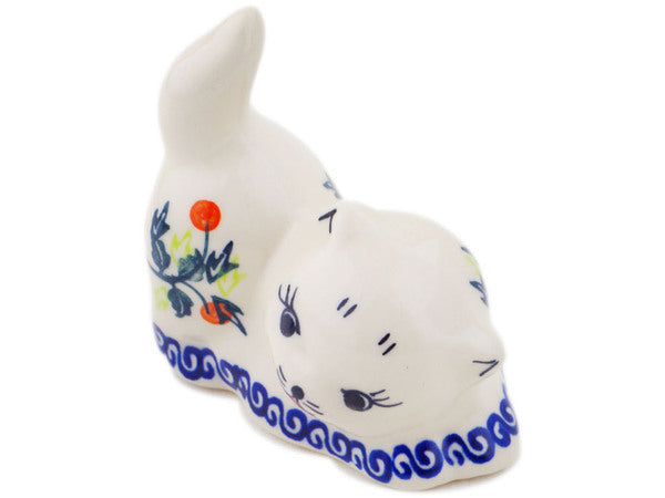 This Polish Pottery Cat Figurine is handmade and handpainted by the Ceramika Bona factory in Boleslawiec, Poland. Manufacturer item number H1976R. It is 3¼" high and measures 3¼" by 2". The weight of this Cat Figurine is 0.3 lbs. It is part of the Pastel Spring Wreath Collection.