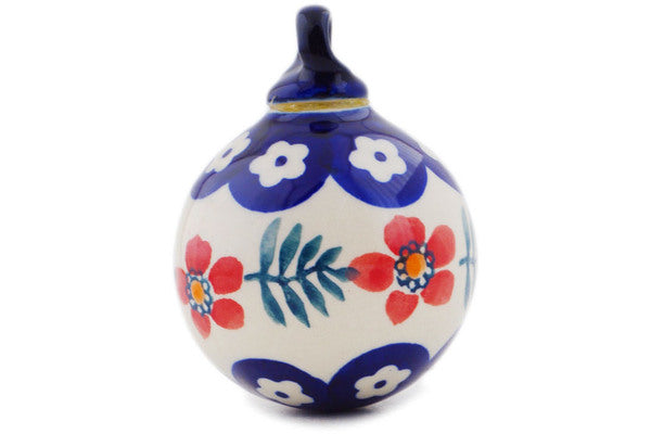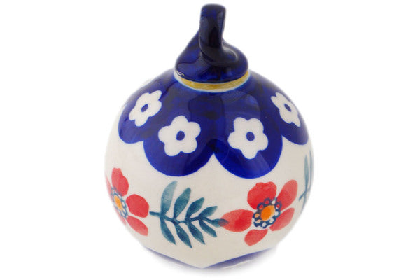 This Polish Pottery Christmas Ball Ornament is handmade and handpainted by the Manufaktura factory in Boleslawiec, Poland. Manufacturer item number H4308O. It is 2¾" high and measures 2¼" by 2¼". The weight of this Christmas Ball Ornament is 0.2 lbs. It is part of the Poppies And Ferns Collection.
