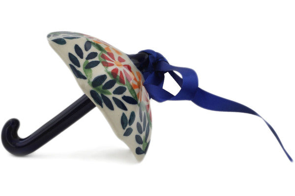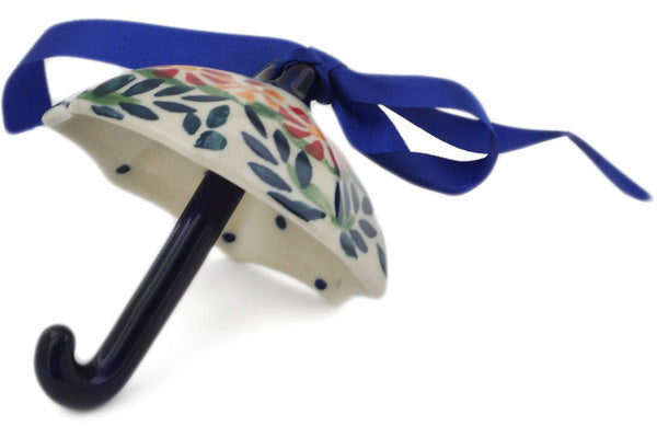 This Polish Pottery Umbrella Ornament is handmade and handpainted by the Manufaktura factory in Boleslawiec, Poland. Manufacturer item number H7728K. It is 3" high and measures 3" by 2½". The weight of this Umbrella Ornament is 0.1 lbs. It is part of the Wave Of Flowers Collection.