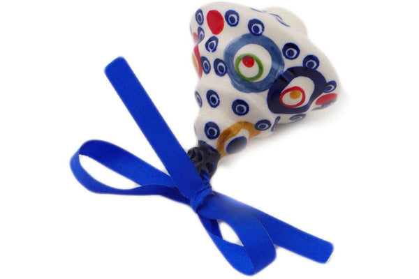 This Polish Pottery Christmas Tree Ornament is handmade and handpainted by the Manufaktura factory in Boleslawiec, Poland. Manufacturer item number H8518Q. It is 3¼" high and measures 2½" by 2½". The weight of this Christmas Tree Ornament is 0.2 lbs. It is part of the Bubble Machine Collection.