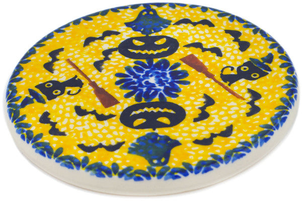 This Polish Pottery Coaster is handmade and handpainted by the Ceramika Nina factory in Boleslawiec, Poland. Manufacturer item number H3310P. It is ¼" high and measures 4½" by 4½". The weight of this Coaster is 0.4 lbs. It is part of the Halloween Evening Collection.