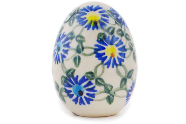 This Polish Pottery Egg Figurine is handmade and handpainted by the Ceramika Bona factory in Boleslawiec, Poland. Manufacturer item number H1885R. It is 2¾" high and measures 2¼" by 2¼". The weight of this Egg Figurine is 0.0 lbs. It is part of the Blue Thistle Beauty Collection.