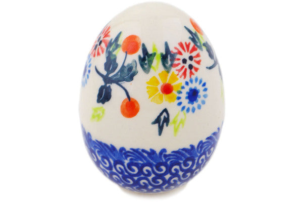 This Polish Pottery Egg Figurine is handmade and handpainted by the Ceramika Bona factory in Boleslawiec, Poland. Manufacturer item number H2087R. It is 2¾" high and measures 2¼" by 2¼". The weight of this Egg Figurine is 0.0 lbs. It is part of the Pastel Spring Wreath Collection.