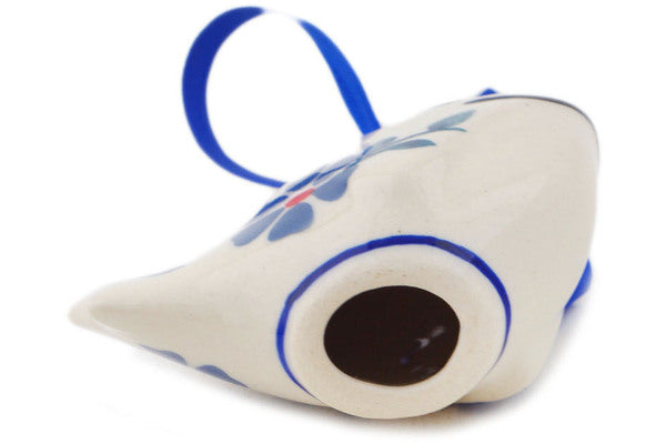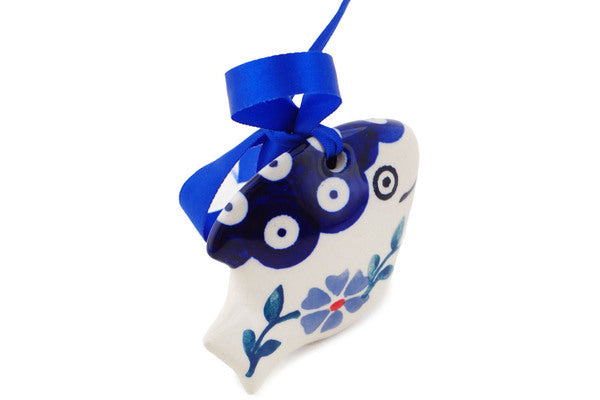 This Polish Pottery Fish Ornament is handmade and handpainted by the Manufaktura factory in Boleslawiec, Poland. Manufacturer item number H6420R. It is 1½" high and measures 3" by 2½". The weight of this Fish Ornament is 0.2 lbs. It is part of the Peacock Forget-Me-Not Collection.