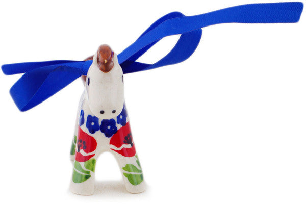 This Polish Pottery Horse Ornament is handmade and handpainted by the Manufaktura factory in Boleslawiec, Poland. Manufacturer item number H8595Q. It is 2½" high and measures 3¼" by ¾". The weight of this Horse Ornament is 0.1 lbs. It is part of the Wild Poppies Collection.