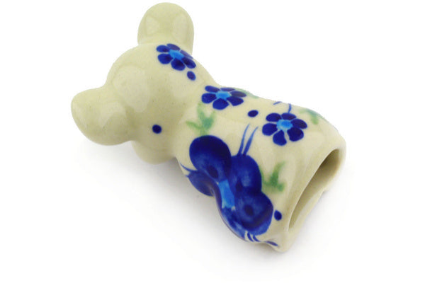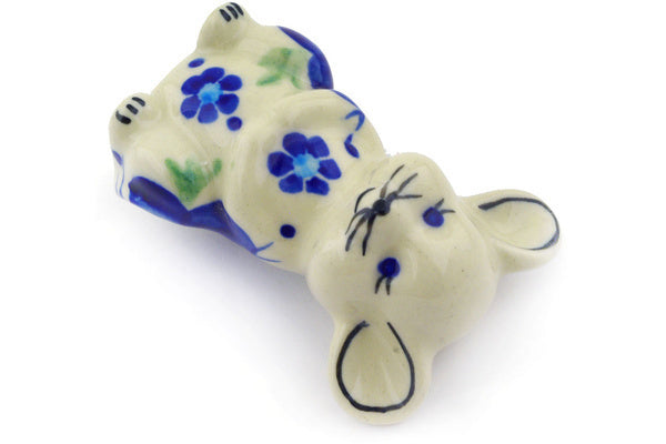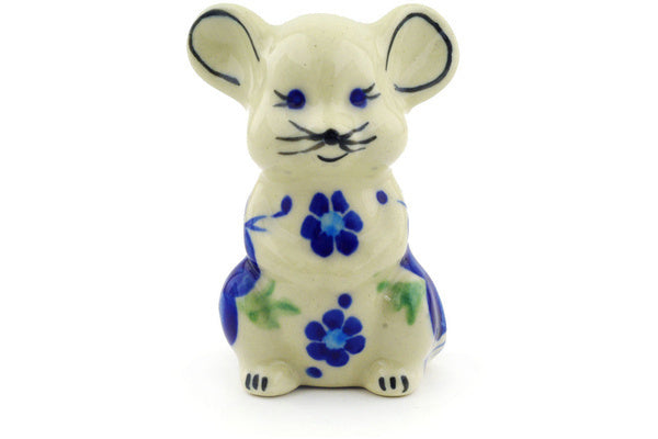 This Polish Pottery Mouse Figurine is handmade and handpainted by the Ceramika Bona factory in Boleslawiec, Poland. Manufacturer item number H7032E. It is 2¾" high and measures 1½" by 1½". The weight of this Mouse Figurine is 0.1 lbs. It is part of the Bleu-Belle Fleur Collection.