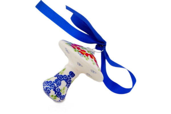 This is a Polish pottery Unikat (Signature) Mushroom Ornament, which means that it has been hand painted with both sponges and brushes and it is signed by the artist who painted it. Unikat pieces are the most intricate works of art. Larger Unikat items take hours of very careful work to finish.