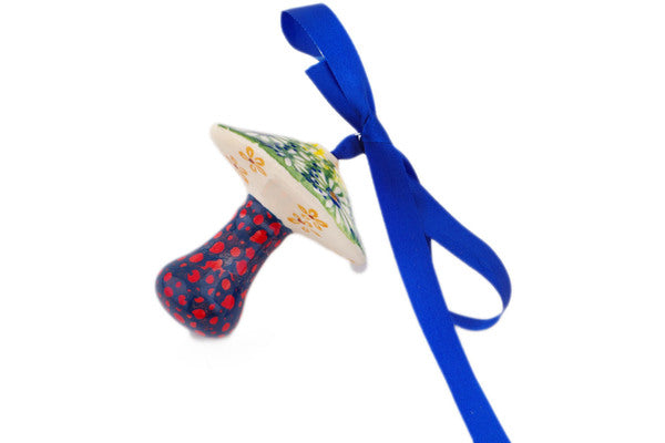 This Polish Pottery Mushroom Ornament is handmade and handpainted by the Manufaktura factory in Boleslawiec, Poland. Manufacturer item number H7544P. It is 2¾" high and measures 2¾" by 2¼". The weight of this Mushroom Ornament is 0.1 lbs. It is part of the Sunshine Grotto Collection.