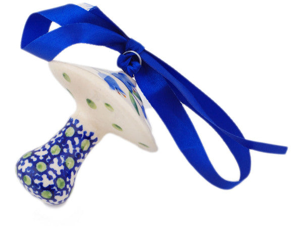 This Polish Pottery Mushroom Ornament is handmade and handpainted by the Manufaktura factory in Boleslawiec, Poland. Manufacturer item number H7358P. It is 2¾" high and measures 2¾" by 2¼". The weight of this Mushroom Ornament is 0.1 lbs. It is part of the Sweet Dreams Collection.