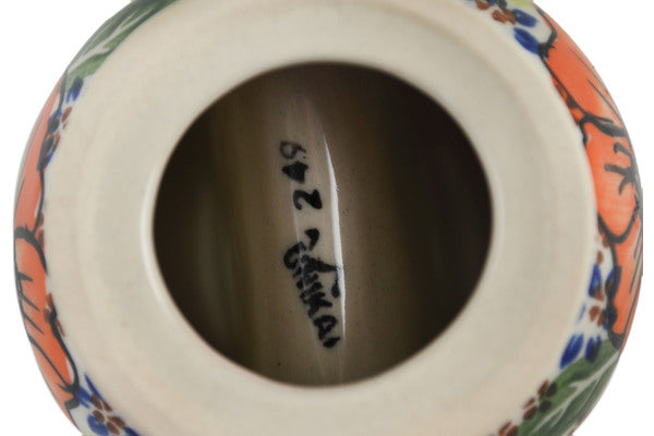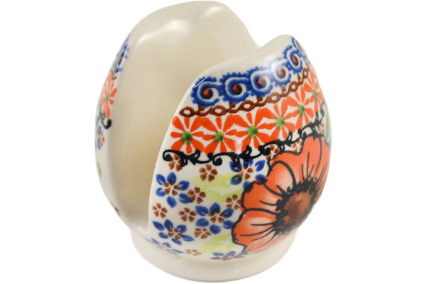 This Polish Pottery Napkin Holder is handmade and handpainted by the Ceramika Nina factory in Boleslawiec, Poland. Manufacturer item number H3356P. It is 3¼" high and measures 3¼" by 3¼". The weight of this Napkin Holder is 0.5 lbs. It is part of the Orange Zinnia Collection.