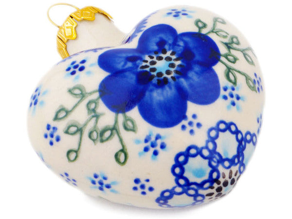 This Polish Pottery Ornament Heart is handmade and handpainted by the Vena factory in Boleslawiec, Poland. Manufacturer item number H0067P. It is 3½" high and measures 2¾" by 1¾". The weight of this Ornament Heart is 0.1 lbs. It is part of the Bloom Queens Collection.
