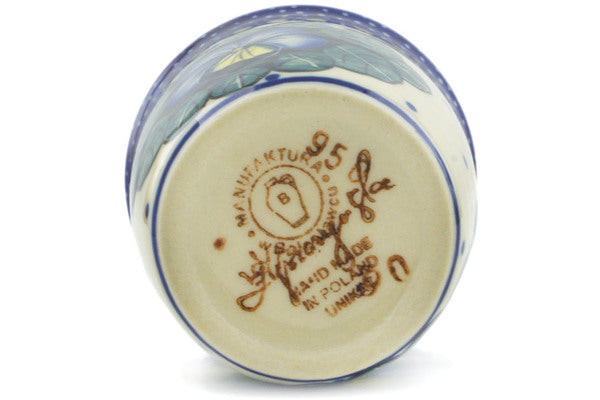 This is a Polish pottery Unikat (Signature) Tumbler, which means that it has been hand painted with both sponges and brushes and it is signed by the artist who painted it. Unikat pieces are the most intricate works of art. Larger Unikat items take hours of very careful work to finish.