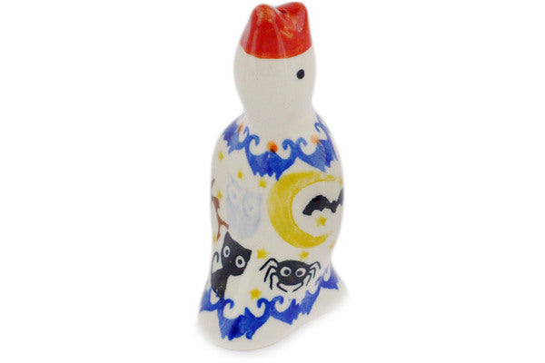 This Polish Pottery Pie Bird is handmade and handpainted by the Ceramika Bona factory in Boleslawiec, Poland. Manufacturer item number H5868R. It is 3½" high and measures 1¾" by 1½". The weight of this Pie Bird is 0.2 lbs. It is part of the Halloween Spooky Vibe Collection.