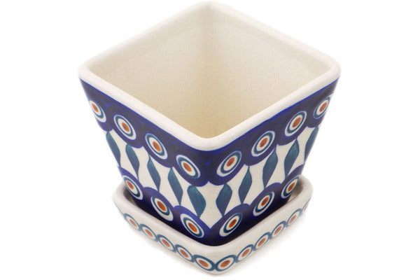 This Polish Pottery Planter is handmade and handpainted by the Manufaktura factory in Boleslawiec, Poland. Manufacturer item number H1018O. It is 3¼" high and measures 3¼" by 3¼". The weight of this Planter is 0.8 lbs. It is part of the Peacock Collection.