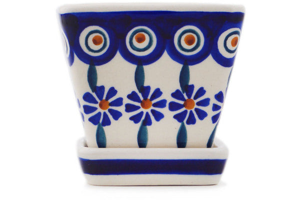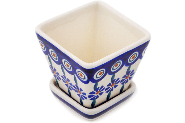 This Polish Pottery Planter is handmade and handpainted by the Manufaktura factory in Boleslawiec, Poland. Manufacturer item number H8347Q. It is 3¼" high and measures 3¼" by 3¼". The weight of this Planter is 0.8 lbs. It is part of the Peacock Collection.