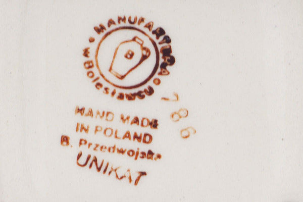 This is a Polish pottery Unikat (Signature) Planter, which means that it has been hand painted with both sponges and brushes and it is signed by the artist who painted it. Unikat pieces are the most intricate works of art. Larger Unikat items take hours of very careful work to finish.