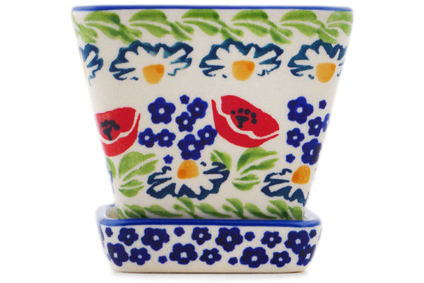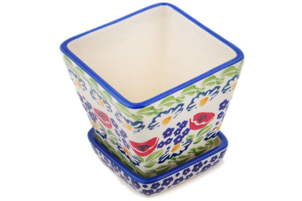 This Polish Pottery Planter is handmade and handpainted by the Manufaktura factory in Boleslawiec, Poland. Manufacturer item number H8357Q. It is 3¼" high and measures 3¼" by 3¼". The weight of this Planter is 0.8 lbs. It is part of the Wild Poppies Collection.