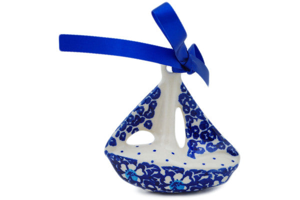 This Polish Pottery Sailboat Ornament is handmade and handpainted by the Manufaktura factory in Boleslawiec, Poland. Manufacturer item number H1163O. It is 3" high and measures 3¼" by 1½". The weight of this Sailboat Ornament is 0.1 lbs. It is part of the Flowers On The Lake Collection.
