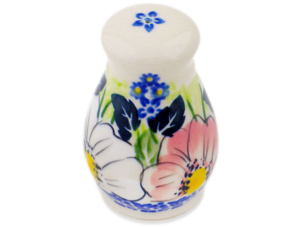 This Polish Pottery Salt Shaker is handmade and handpainted by the Ceramika Nina factory in Boleslawiec, Poland. Manufacturer item number H3177P. It is 3¼" high and measures 2" by 2". The weight of this Salt Shaker is 0.3 lbs. It is part of the Maroon Blossoms Collection.