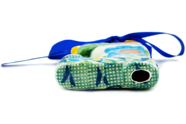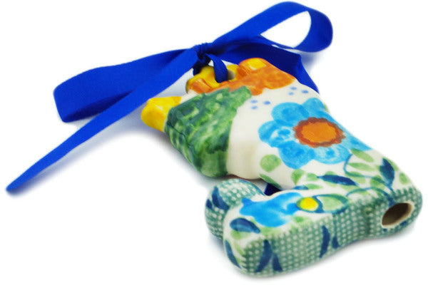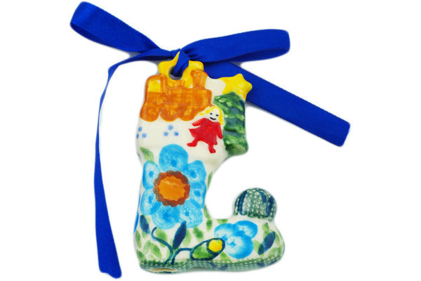 This Polish Pottery Boot Ornament is handmade and handpainted by the Manufaktura factory in Boleslawiec, Poland. Manufacturer item number H5964M. It is ½" high and measures 3¼" by 2". The weight of this Boot Ornament is 0.1 lbs. It is part of the Bright Blue Happiness Collection.